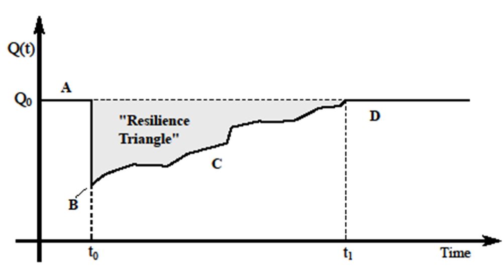 Comprehensive yet efficient numerical modeling and analysis tools for large and complex infrastructure systems are becoming increasingly important for modern societies. In the current project, according developments are integrated into a comprehensive infrastructure resilience framework taking into account cost and uncertainty of various resilience enhancing decision paths. According to Fig. 1, the resilience is quantified based on the time-dependent system performance Q(t) in the presence of disruptive events and degrading effects over the full life cycle. The “resilience triangle” in a single period is characterized by (A) the reliability, (B) the robustness, and (C) the recoverability of the system, as illustrated in Fig. 1, and corresponding improvement measures.