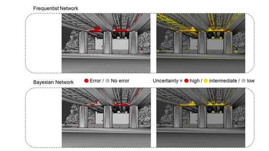 Eine wichtige Information für die Folgeschritte (z.B. Geometriefitting) oder auch für die spätere Nutzung der automatisch abgeleiteten Modelle, ist jedoch die Kenntnis der Qualität, da der automatisierte Prozess nie fehlerfrei gelingt. Trotz großer Fortschritte in den letzten Jahren, sind moderne DNN-Architekturen noch nicht in der Lage die Unsicherheit ihrer Ausgaben ausreichend genau zu quantifizieren, was eine bedeutende Einschränkung der Einsatzfähigkeit in realen Anwendungen darstellt. Um die Robustheit und Verlässlichkeit der semantischen Segmentierung von 3D-Punktwolken im Bereich des Infrastrukturbaus zu steigern, werden im Projekt speziell Bayessche Neuronale Netze für die Schätzung der Unsicherheit untersucht.
